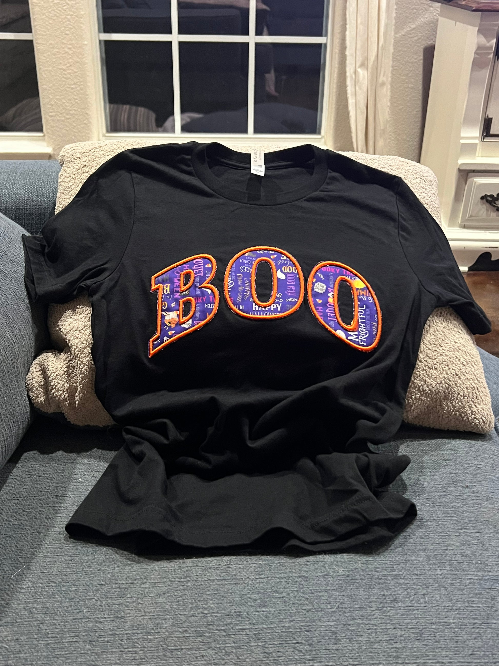3D puff outline, Halloween themed fabric appliqué.